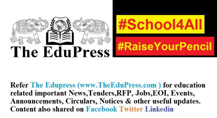 Refer SkillReporter (www.SkillReporter.com) for skill development and The Edupress (www.TheEduPress.com ) for education related important News, Tenders, RFP, Jobs, EOI, Events, Announcements, Circulars, Notices and other useful updates. Content also shared on Facebook Twitter Linkedin