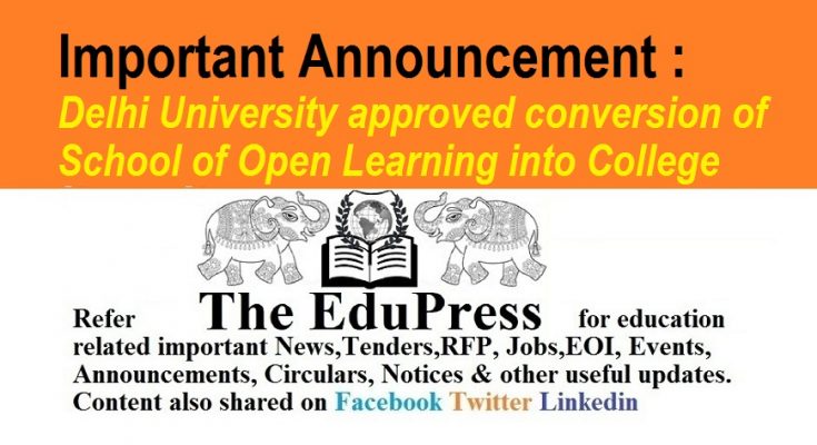 New Delhi : The academic council of Delhi University has approved a proposal to convert School of Open Learning into a college. However, some members alleged the decision was taken without any discussion.