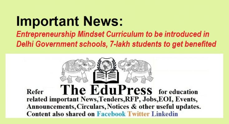 New Delhi: From coming 1st July, 7-lakh students of classes 9th to 12th in Delhi government-run schools will be introduced to a new lesson — the Entrepreneurship Mindset Curriculum, which will help them “think big and new”.