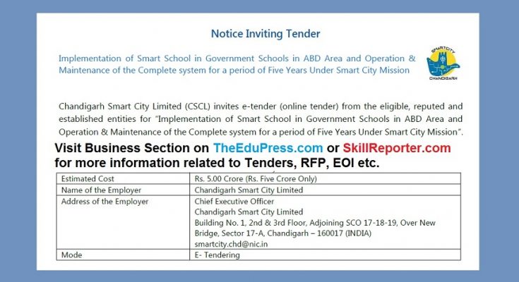 Chandigarh : Chandigarh Smart City Limited (CSCL) invites e-tender (online tender) from the eligible, reputed and