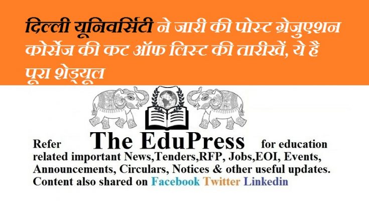 जहां दिल्ली यूनिवर्सिटी ने अंडरग्रेजुएट कोर्सेज में दाखिले के लिए पहली कट ऑफ 28 जून को जारी करने वाला है। वहीं डीयू ने पोस्ट ग्रेजुएशन कोर्सेज (PG Courses) के लिए भी कट ऑफ लिस्ट की तारीख जारी कर दी है। पीजी कोर्सेज के लिए पहली कट ऑफ 17 जुलाई को जारी की जाएगी।