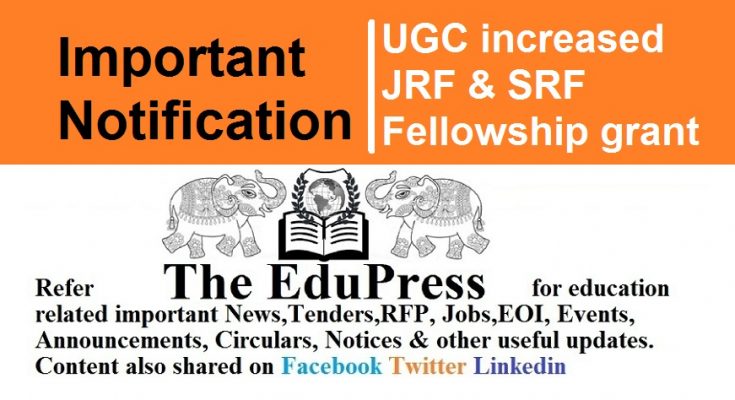 University Grants Commission (UGC), the national higher education regulator, has today notified the revised fellowship amount details of Junior Research Fellowships (JRF) and Senior Research Fellowship (SRF) in Science, Humanities and Social Sciences. According to the revised fellowships, JRF will be awarded Rs. 31,000 while the SRF will be Rs. 35,000.