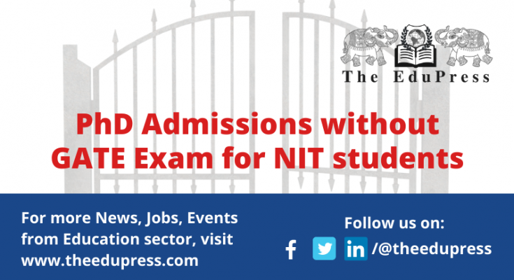 The Indian Institute of Technology (IIT), Delhi, will now allow students pursuing BTech from the National Institutes of Technology (NITs) to get admission in its PhD programmes without appearing for The Graduate Aptitude Test in Engineering (GATE) exam.
