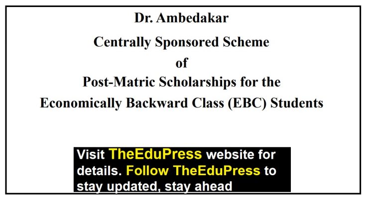 The objective of the scheme is to provide financial assistance to the Economically Backward Class (EBC) students studying at post-matriculation or post-secondary stage to enable them to complete their education.
